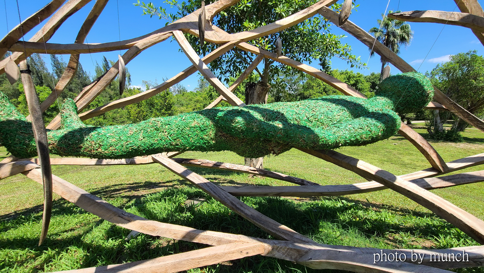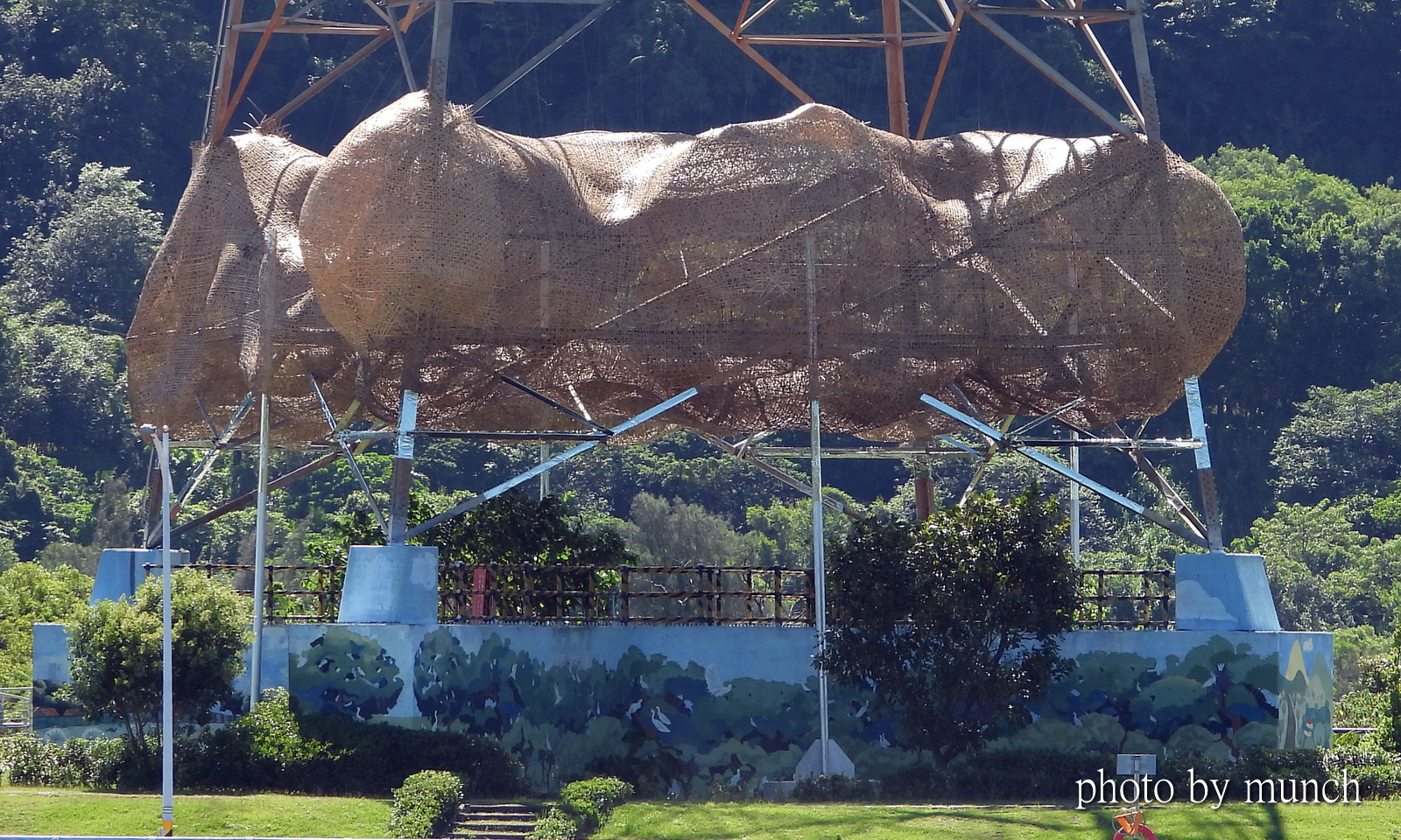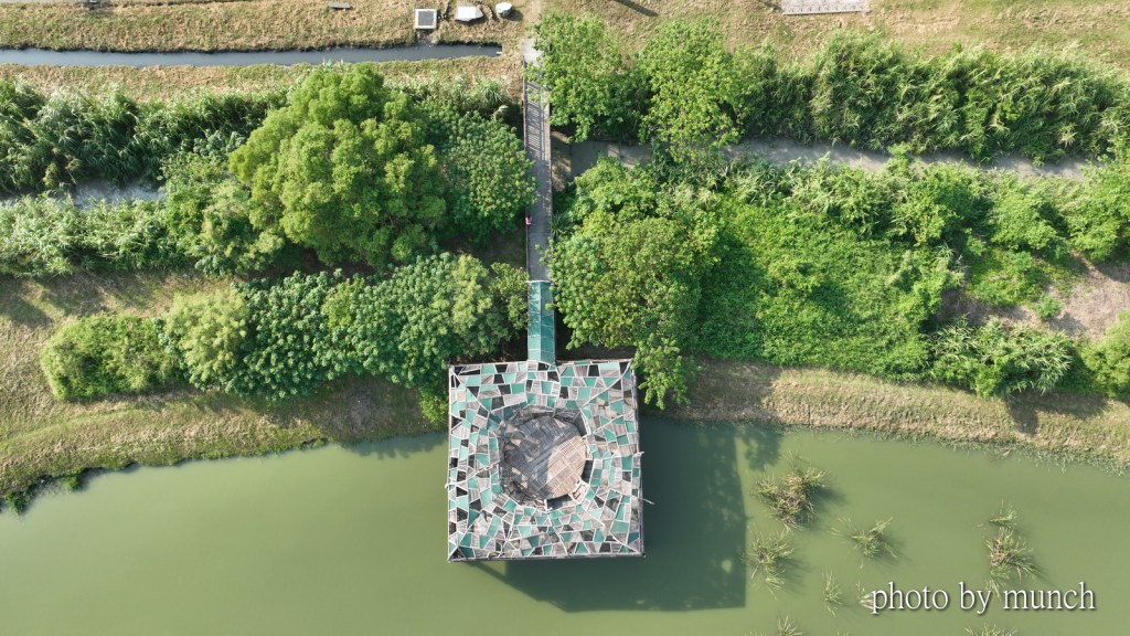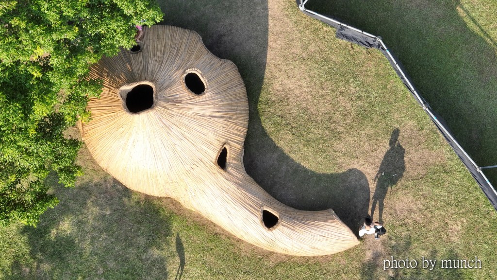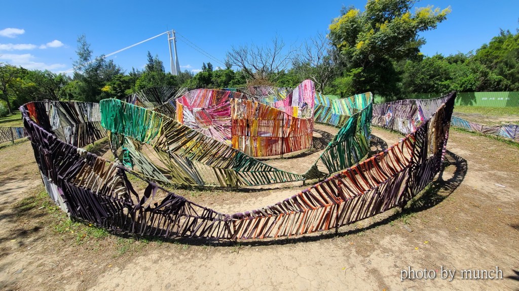原本是一處露天賞鳥平台,藝術家以漂流木、竹片、遮陽布進行改造,成為一座高度藝術化的賞鳥平台,從賞景空間變成也是風景,相當具有實用與藝術價值。
