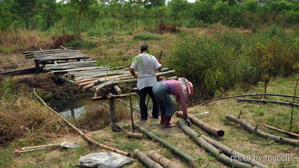 十多年前,他以多元就業的社區雇工,計畫搭建跨圳的竹橋,不只建橋的材料,邀請老師傅復舊成竹橋,甚至橋的位置,都比對當時出入口,精心選擇位置。他說,要作,就愛斟酌,沒當輕采!
