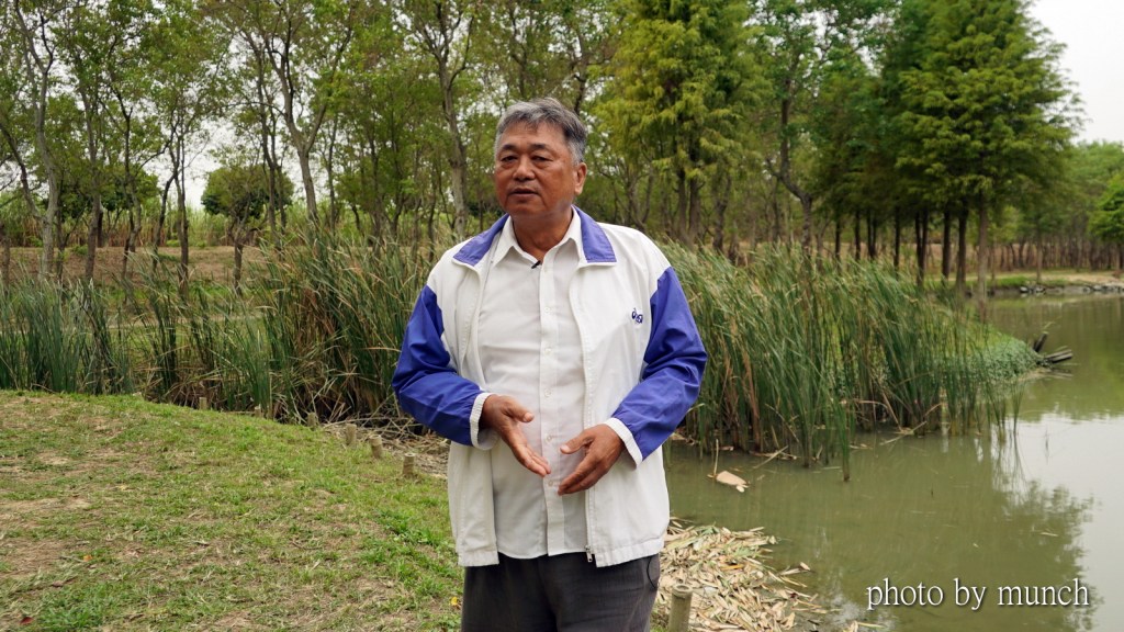 現今濕地旁,種植落羽松,號稱忘憂森林,成為網路打卡景點。曾經問他種植外來種甘好?他說,當時種植落羽松,為了是生長快,根系可以固岸,也僅有岸邊一排,整個平地森林是台灣原生種樹木,只是沒想到,美景會爆紅!