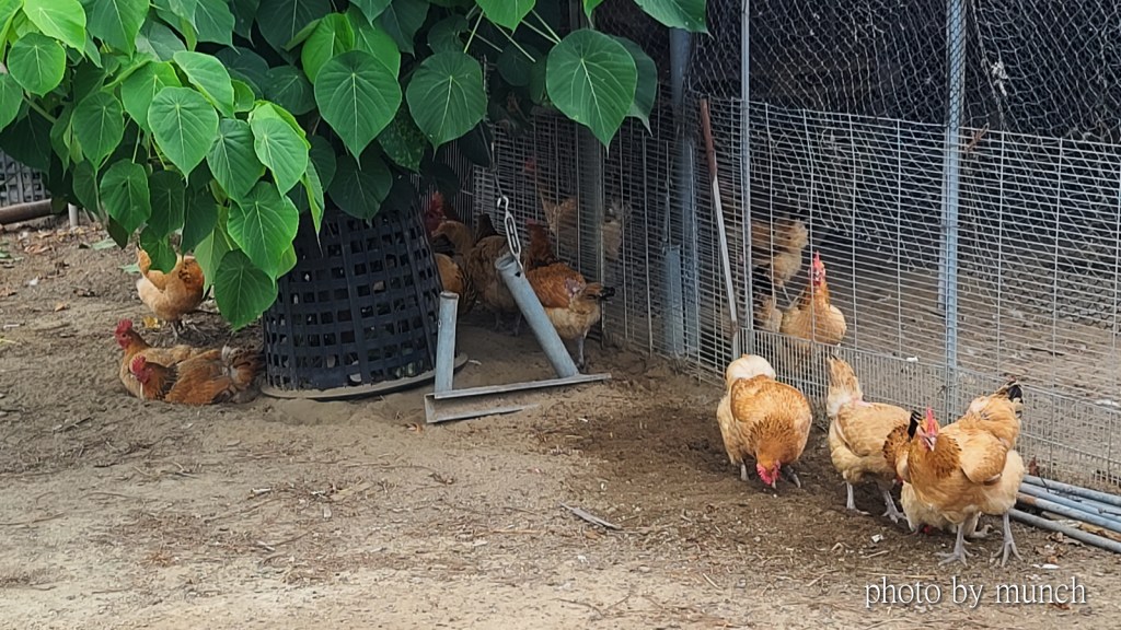 曾經參訪台南甜心有機牧場,場裡的雞雞很快樂,基本上是放養,提供自製有機飼料,也讓牠們到土地覓食,還可以進行自我醫療的沙浴,利用砂土溫度消除身上蟲害。