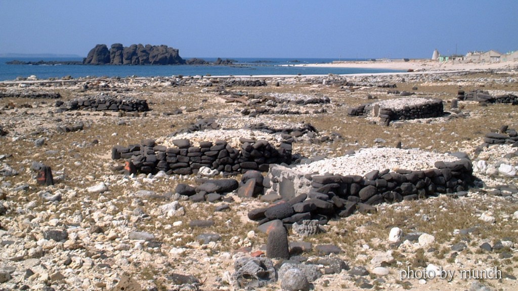 澎湖的石墓文化,以黑色玄武岩圍繞墓塚,上覆白色咾咕石,形成在地特色的墓葬文化。
