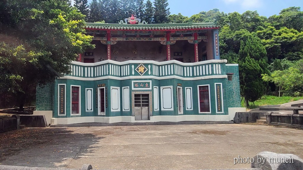 桃園八德的謝氏祖墳東山塔,原為一層的墓室,後來加建二樓祀堂,形成壯闊氣派的塔墓,彰顯家族的榮耀。