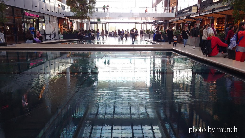 最後的一段,就是商場內部的大通廊,最後決定不拆,維持商場形式,但是中間河流以玻璃覆蓋,讓人們可以看見底下的護城河,同時玻璃面引入流水製造水意象,敘述烏特勒支護城河的故事,以及後代為守護護城河的努力!