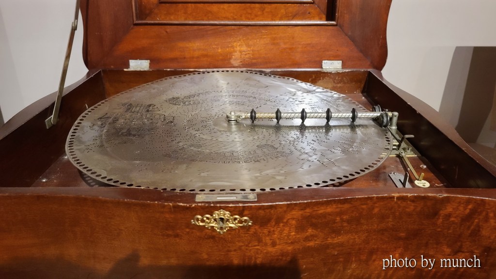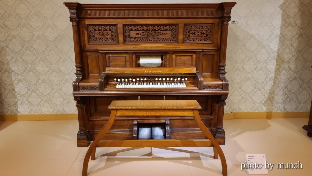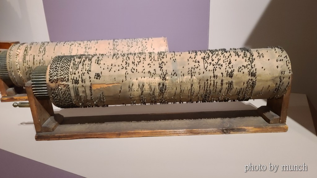 但是樂器廳裡,特別吸引我注意的是自動樂器的收藏。在18世紀左右,透過彈簧、轉軸的機械設計,有一波自動化器具的出現,自動化人偶、自動化樂器,都成為當時的工藝代表。自動化樂器中,不只設計自動演奏各種樂器,甚至透過刻帶、刻盤,能夠演奏不同樂曲。