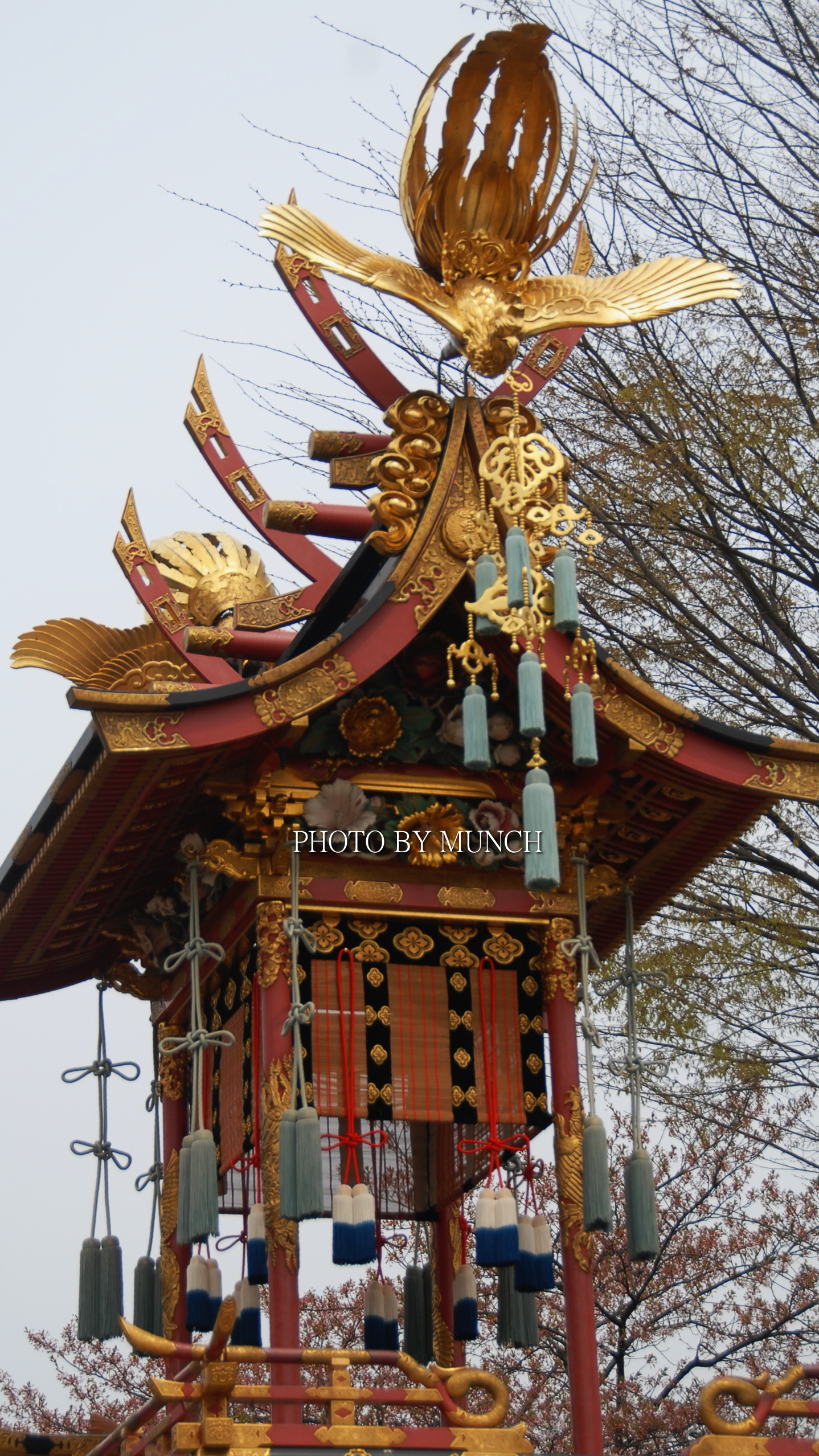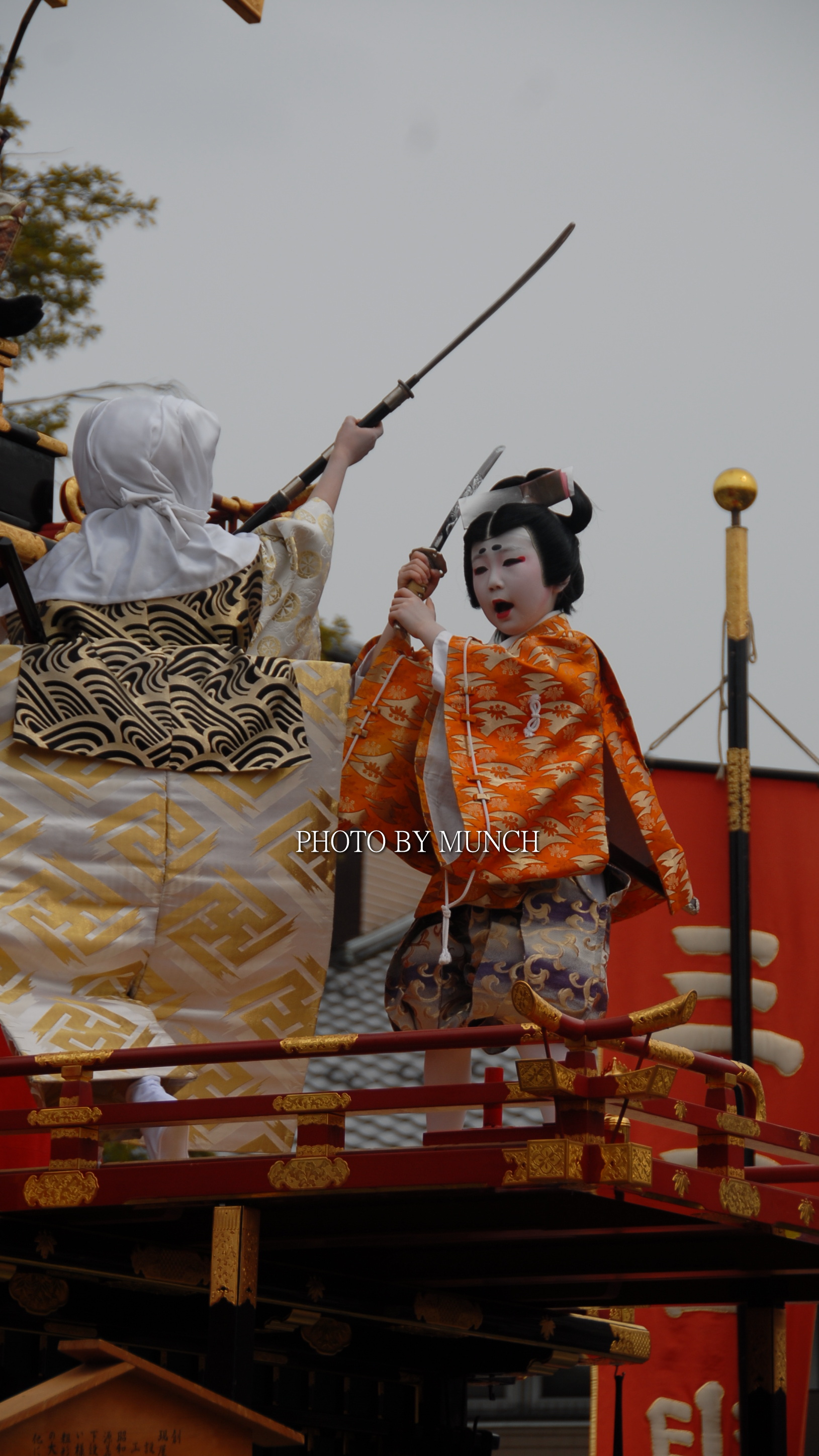 山車、屋台有越來越大型化的趨勢,主要是不斷增高,屋台可達三層,一層是台身,二層是屋閣,三層是閣樓。台身有著精美木雕,屋閣展示繪織作品,閣樓展現金具工藝,提供盛裝的孩童,演出歷史劇,也有展示百年前流行的機械人偶。