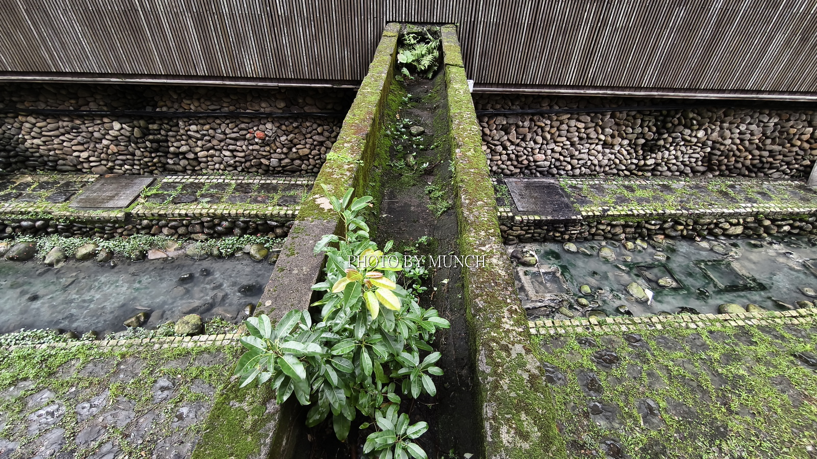 引水口後方,就是瑠公圳圳道,因為晚近都已水泥化,所以在圳頭處興建卵石堤岸,讓人重溫過去圳道的樣貌,