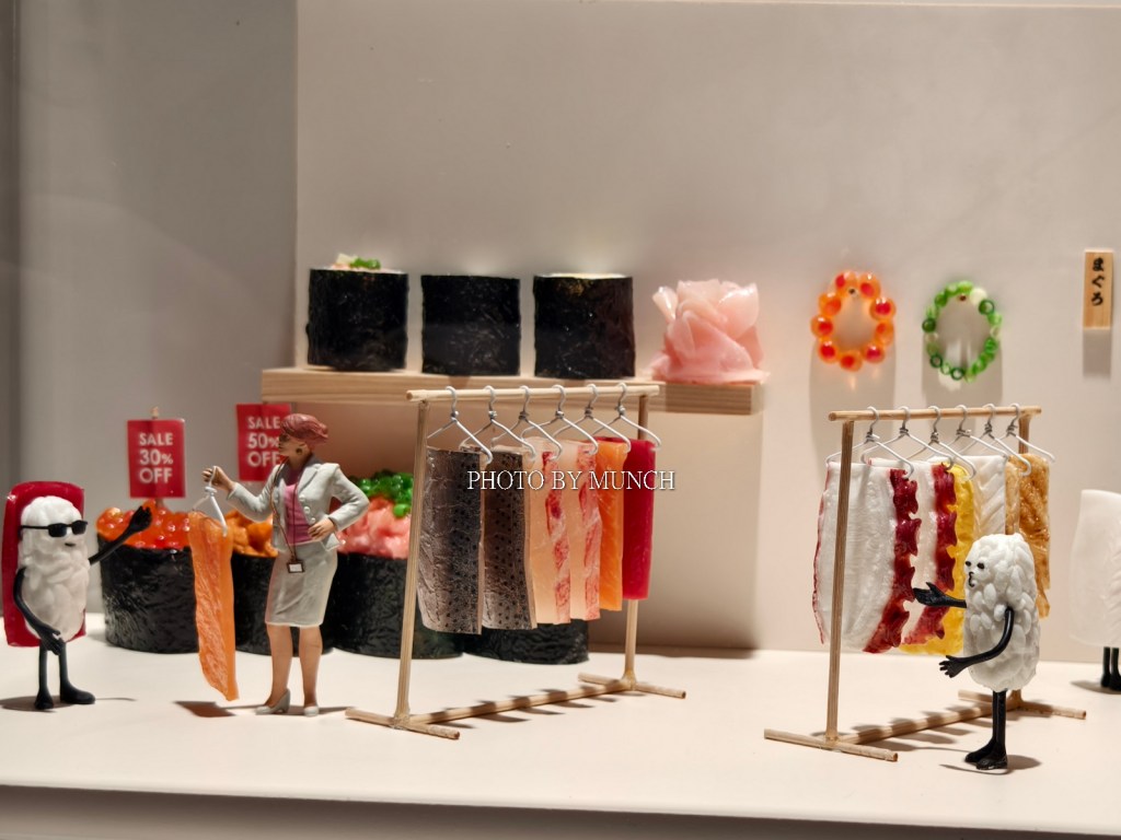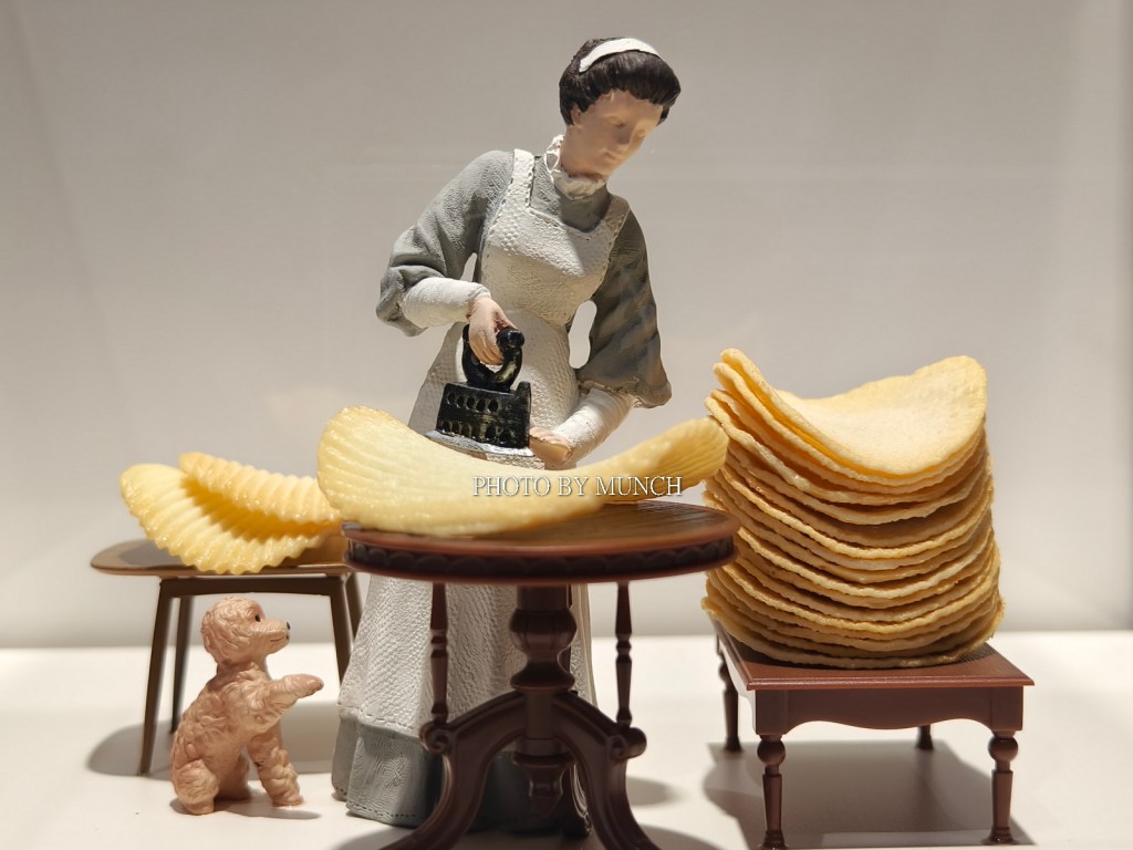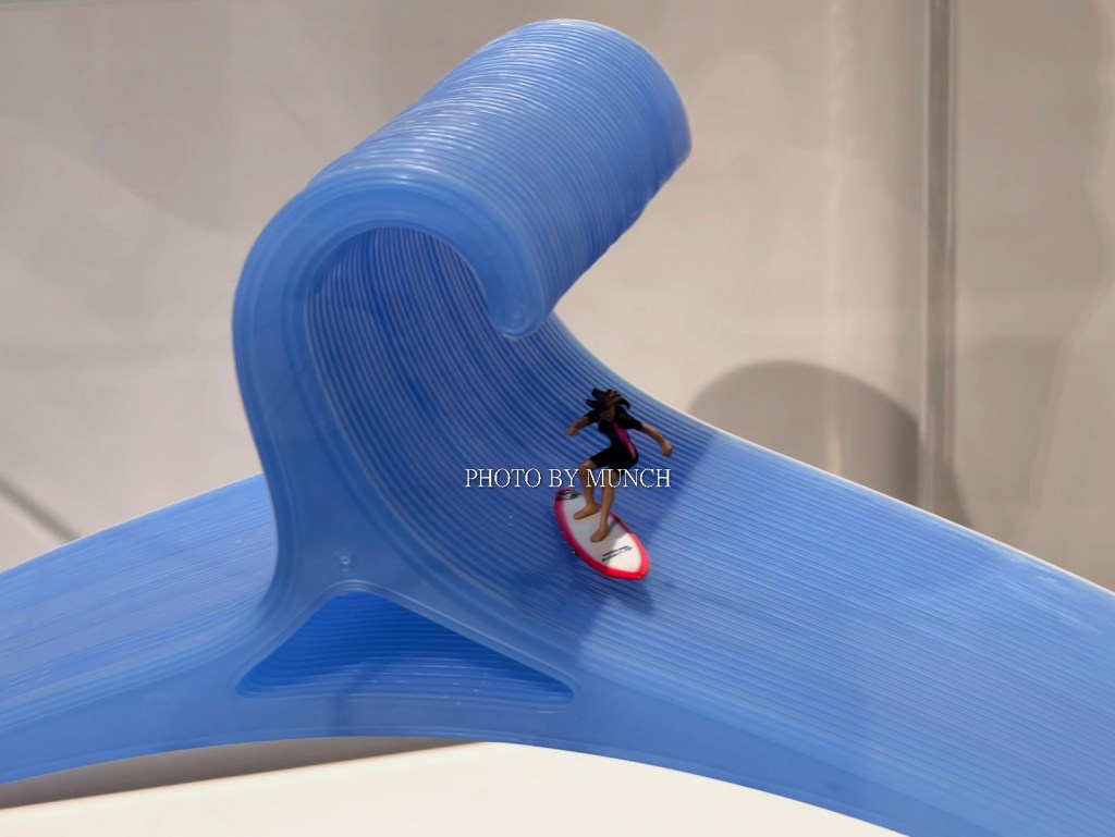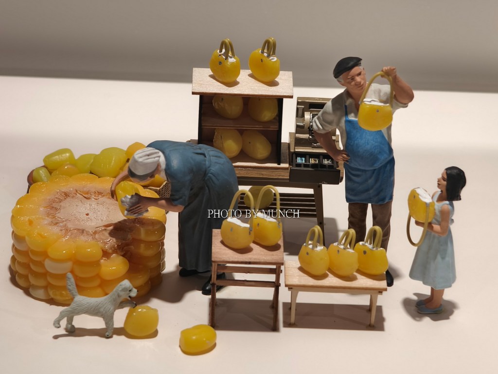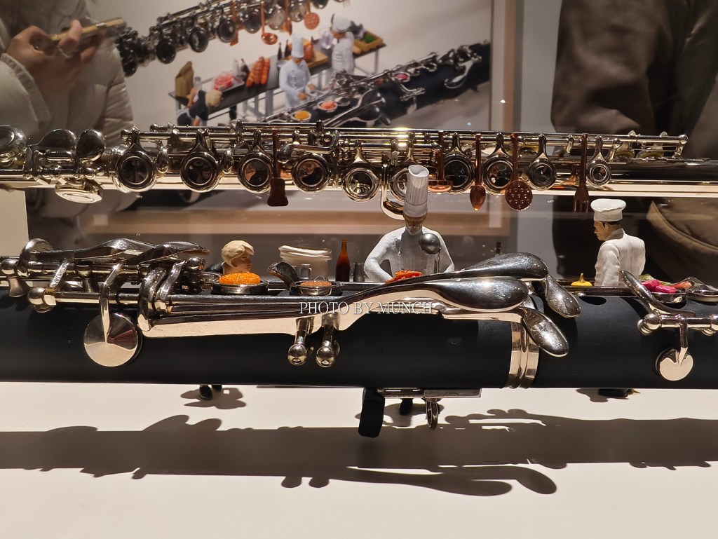像是長笛樂器的按鍵,成為微型餐庭的廚具,像是甜甜圈加餅乾,成為醫院的斷層掃描機,甚至疫情期間的醫療口罩,也能化身成為遊泳池,就在這種巨微之間的趣味轉換,塑造特別的微物藝術。