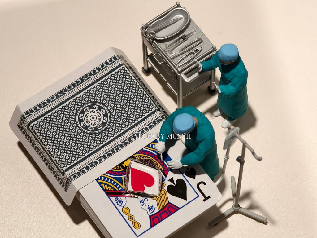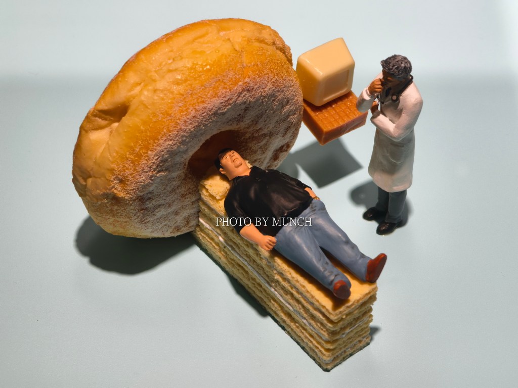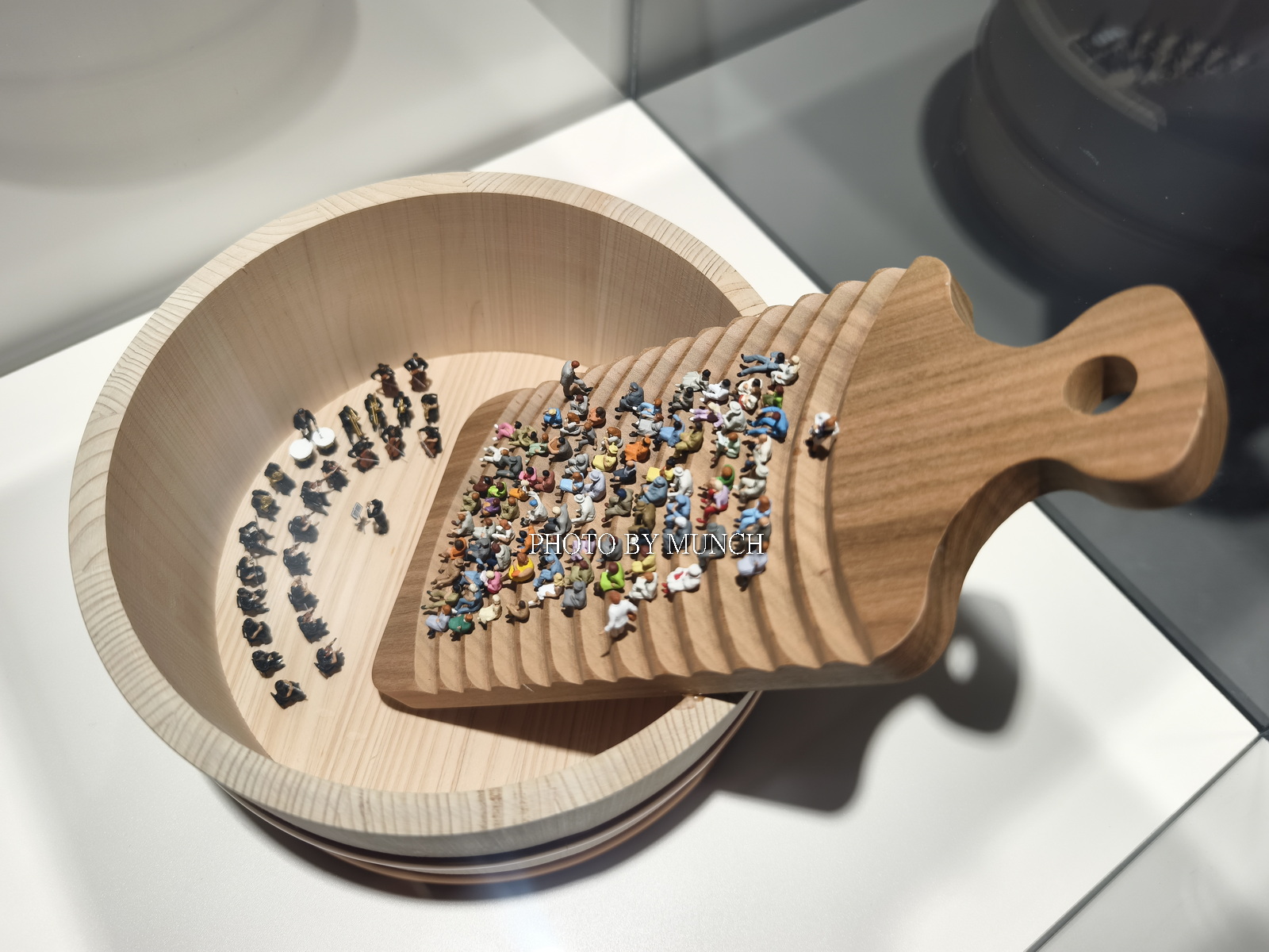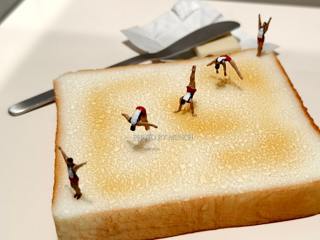 像是長笛樂器的按鍵,成為微型餐庭的廚具,像是甜甜圈加餅乾,成為醫院的斷層掃描機,甚至疫情期間的醫療口罩,也能化身成為遊泳池,就在這種巨微之間的趣味轉換,塑造特別的微物藝術。
