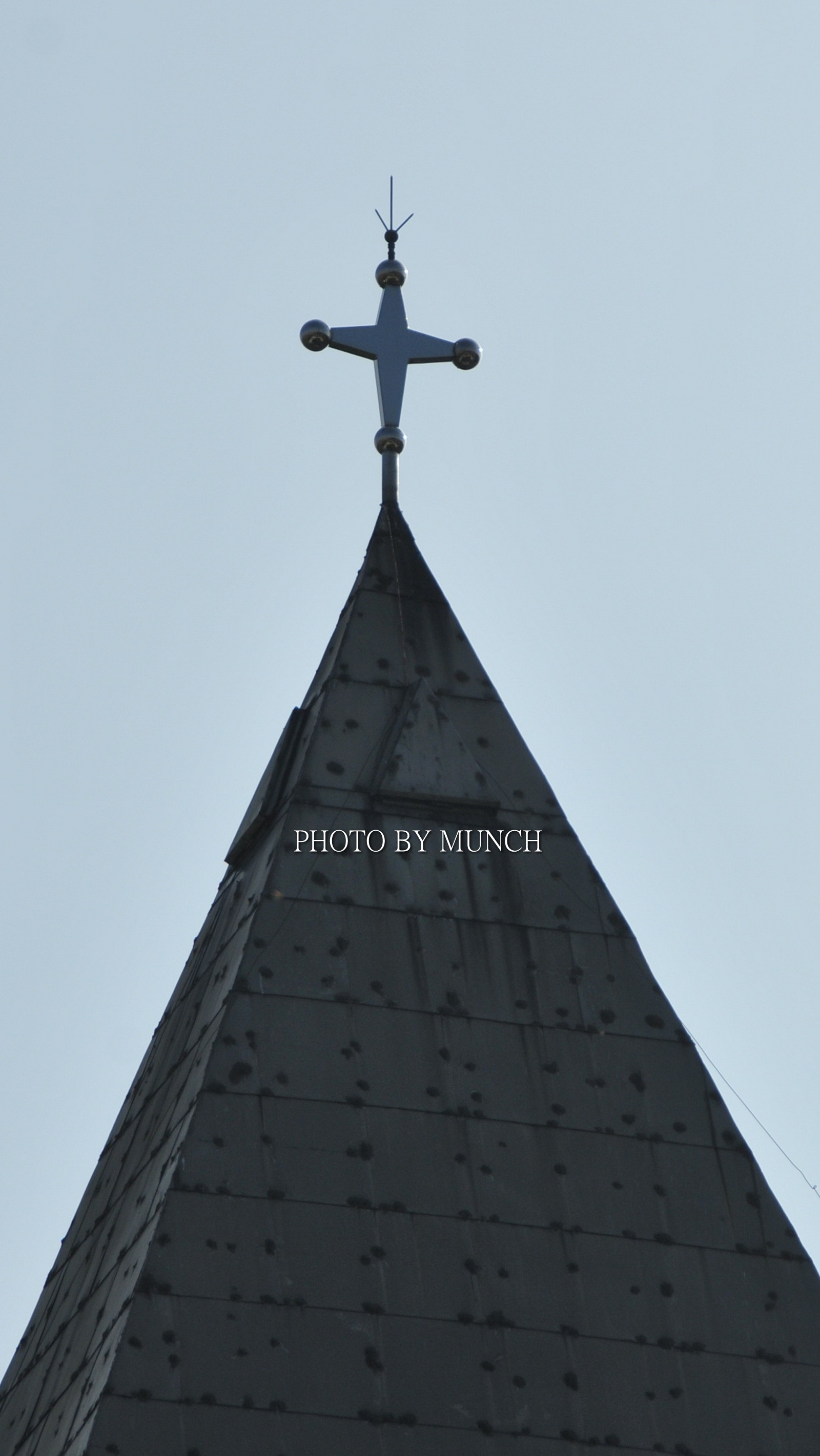 聖十字架堂建築由四個角錐尖頂組成,分別為鐘樓、聖洗堂、聖殿、聖體小堂,角錐尖頂都包覆鋁皮,錐頂上分別為公雞、鴿子、十字架、王冠的基督信仰標記。