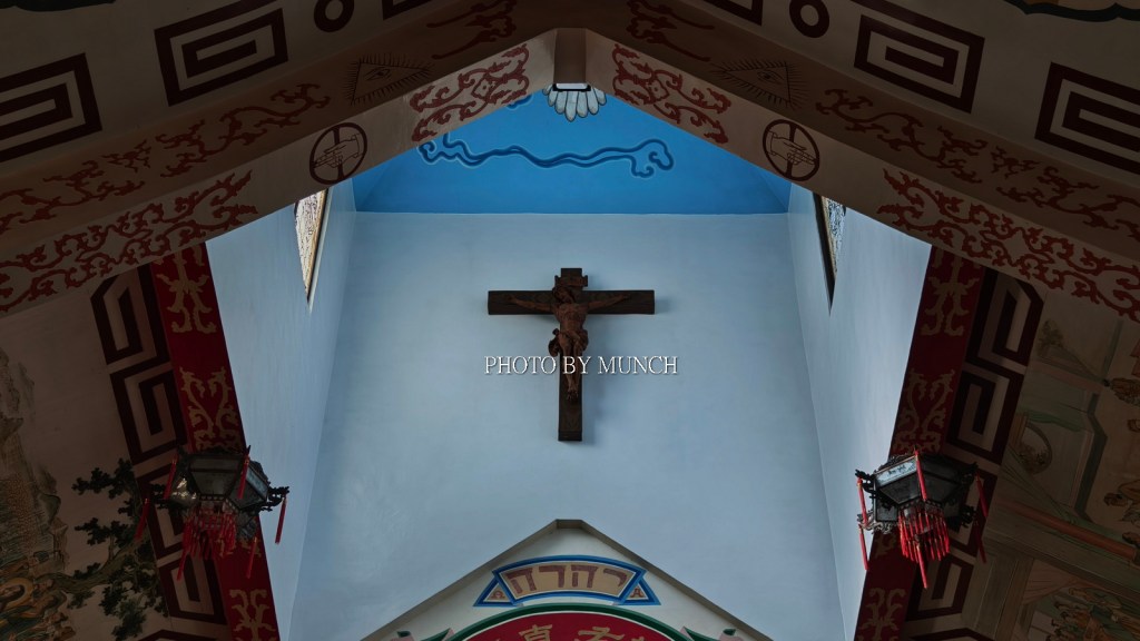 特別是聖壇後方繪製的最後晚餐,耶穌與12門徒都已換上漢服,甚至桌上食物也是東方餐具。