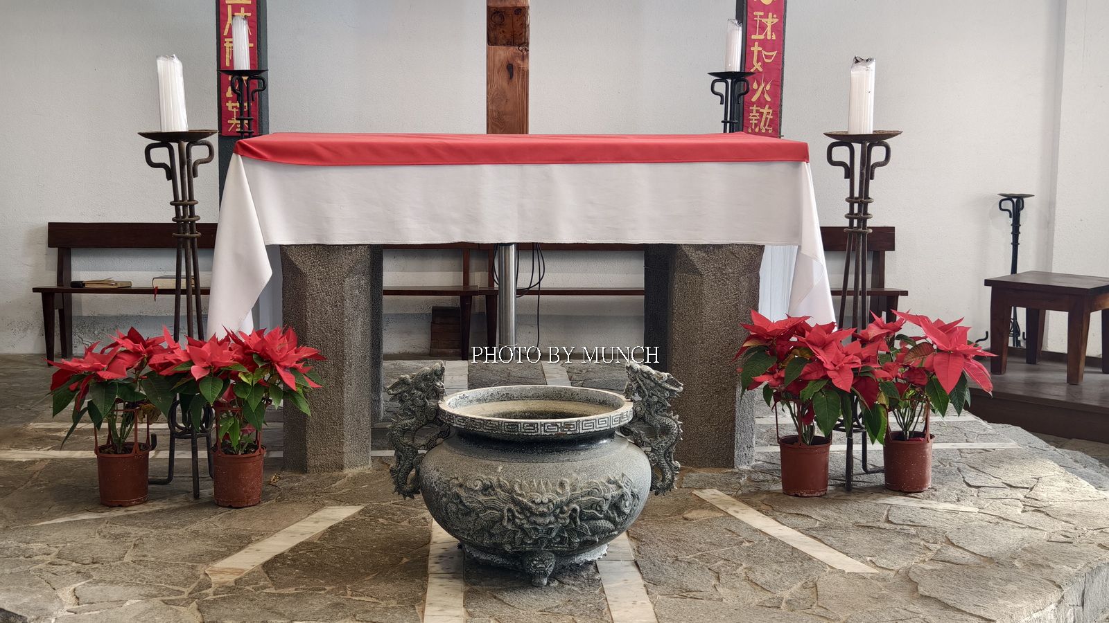 教堂空間有供奉聖母及聖子的聖母亭,以及祈禱天父的祭天殿,用祭天殿作為聖殿名稱,是不是相當有台味。