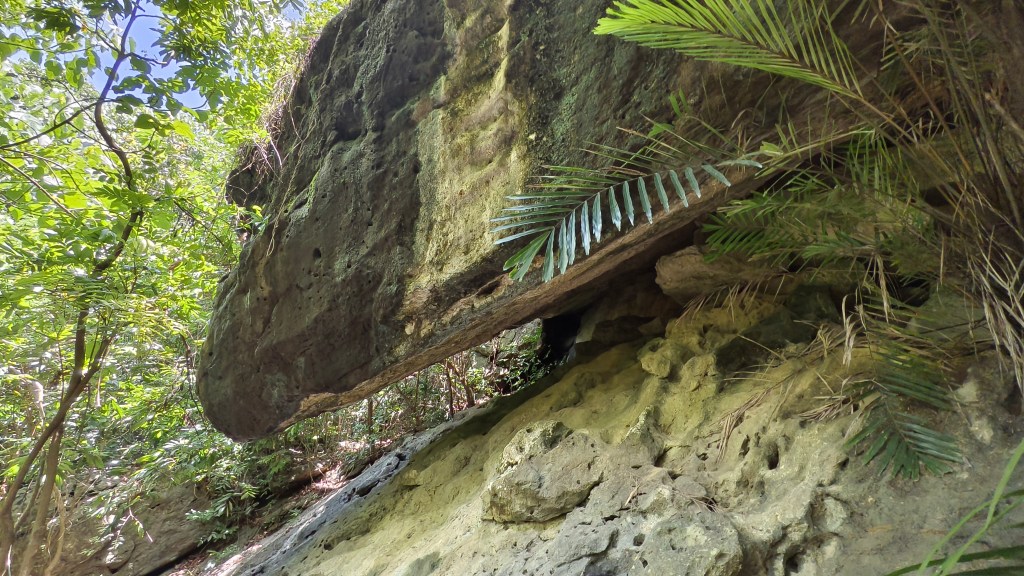 在路徑中,穿越一塊崩落大石壁,前往上方聚落,現今已有馬路相通,但是戴智煦牧師帶著學員爬到石壁,就記得這是過去獵人的獵徑,族人交通來往走馬路,採集打獵就走百年古道。