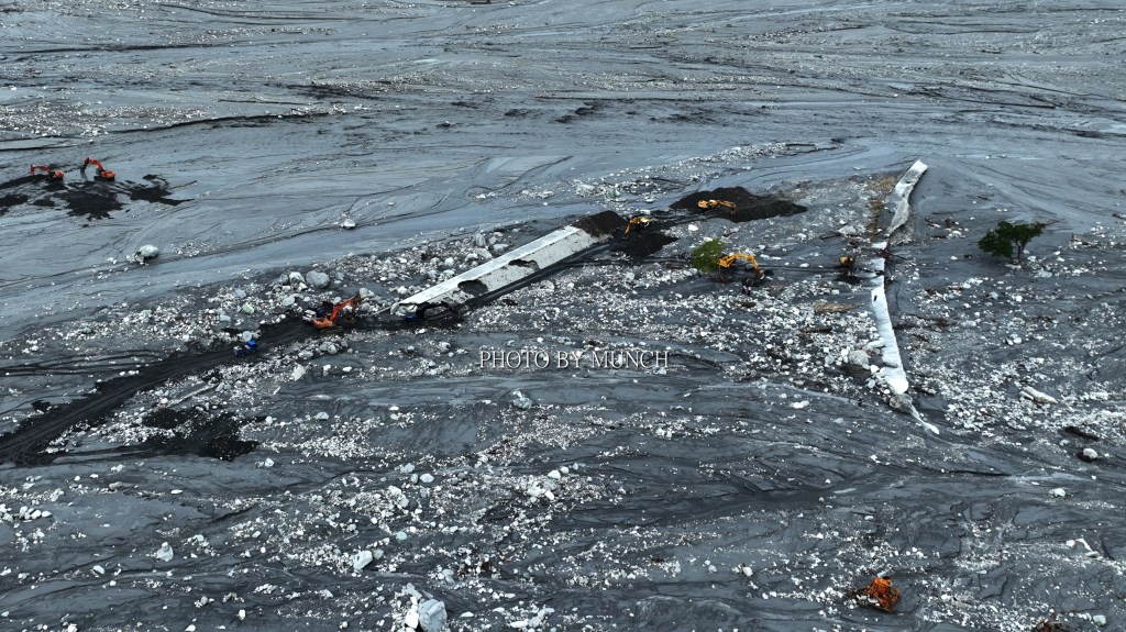 情況很糟,河床已經墊高到看不見堤坊,或是堤坊已遭沖毀?只要有大雨大水,就是無阻礙直接再度泥水入鄉。